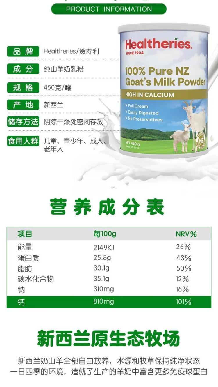 Healtheries贺寿利羊奶粉 450克 3罐包邮