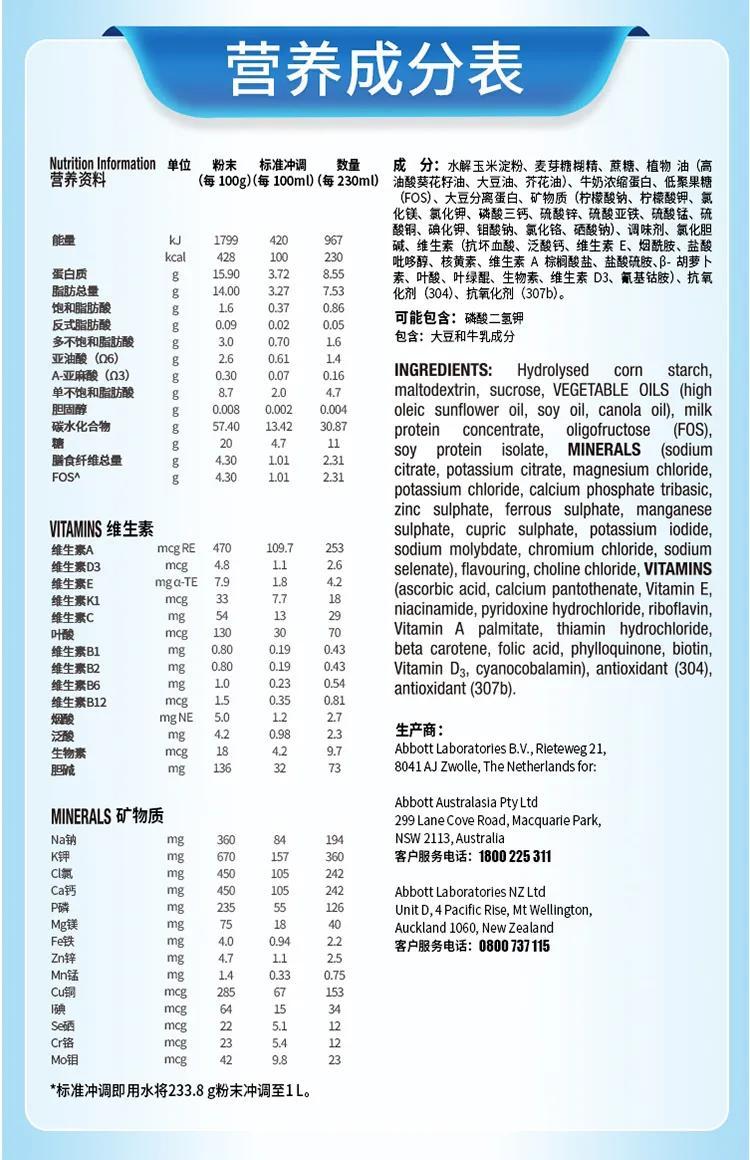 Nestle雀巢儿童成长营养粉800g 3罐包邮(澳洲直邮)产品相关标签