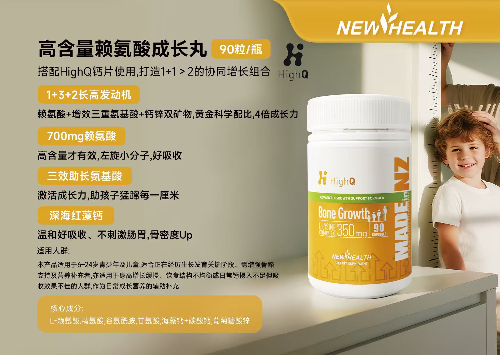 标签 养生保健品, HighQ 成长胶囊赖氨素350mg 90粒, 新生活跨境购, 海淘, 电商, 直邮, 产品火爆, 物美价廉, 智能系统, 国际, 全天客服, 网络平台, 服务体系, 纯净品质