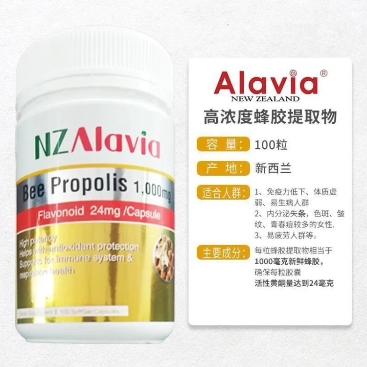养生保健品NZAlavia高含量蜂胶类黄酮24mg每粒100粒新生活跨境购海淘电商产品火爆物美价廉智能系统国际全天客服网络平台服务体系纯净品质