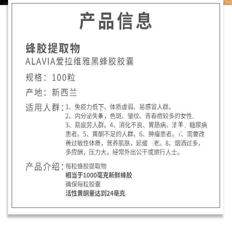 NZ Alavia 高含量蜂胶类黄酮24mg每粒 100粒